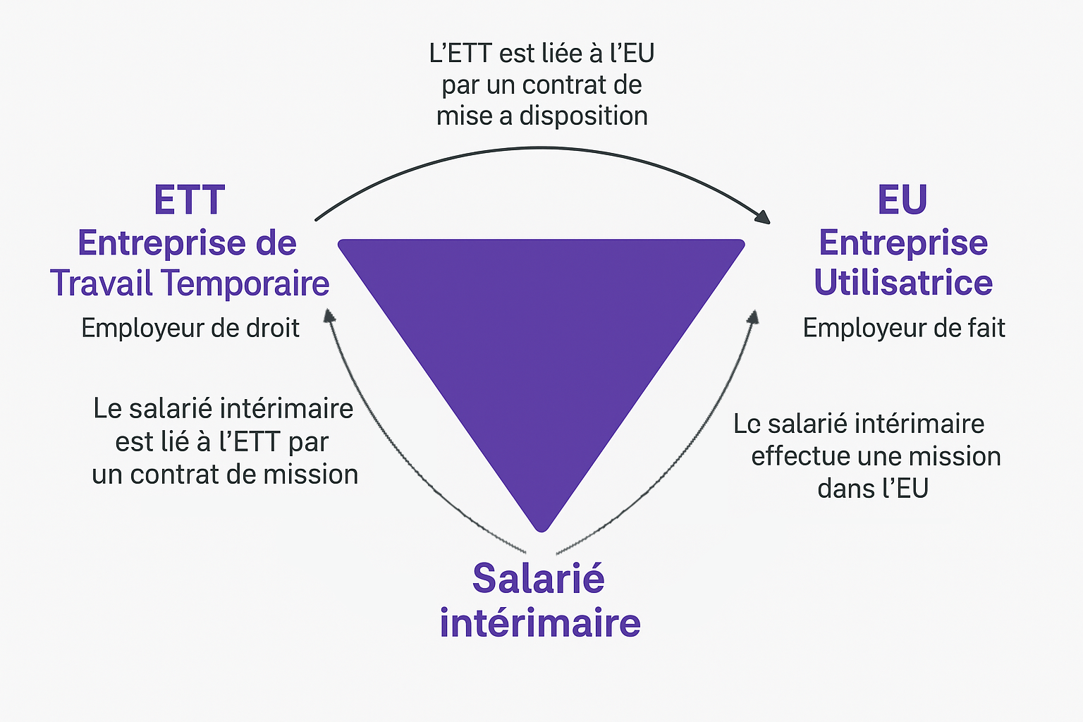 L’intérim se caractérise par une relation triangulaire entre l'Entreprise de Travail Temporaire (ETT), l'Entreprise Utilisatrice (EU) et le salarié intérimaire :