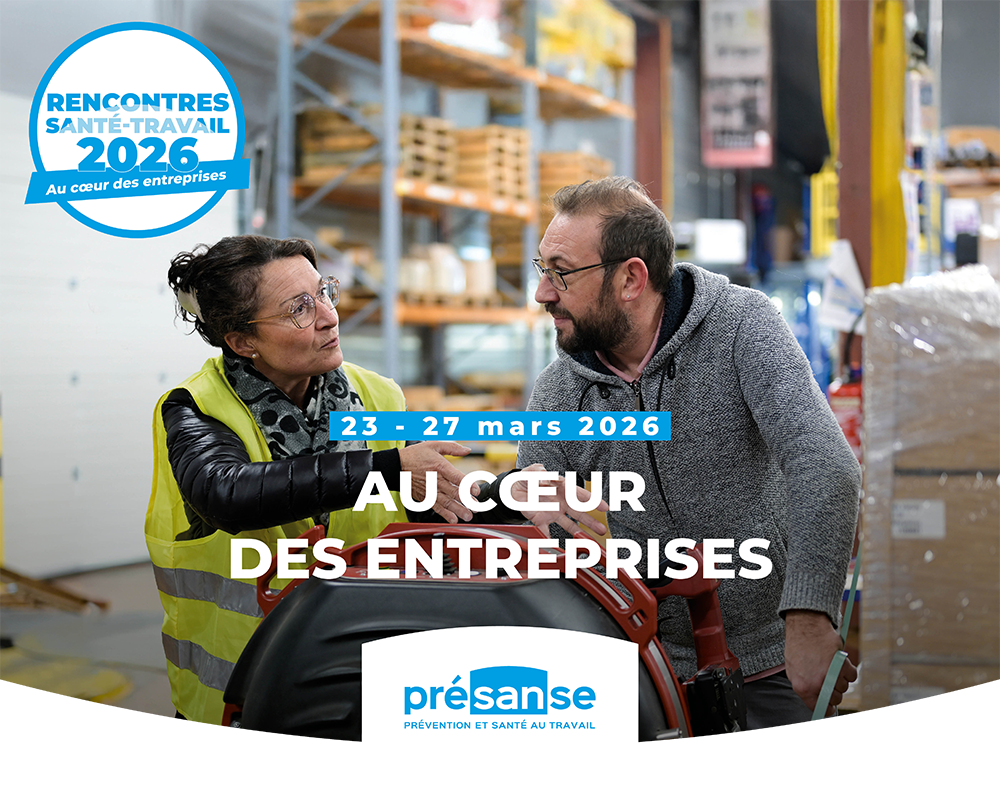 Du 23 au 27 mars 2026, le réseau Présanse organise la 7e édition des rencontres santé-travail pour mettre en valeur la prévention et les actions menées par les services de prévention et de santé au travail sur le terrain, au cœur des entreprises, l'occasion de découvrir des initiatives locales pour faire découvrir la prévention et les enjeux de la santé au travail aux entreprises, aux salariés et aux acteurs économiques.